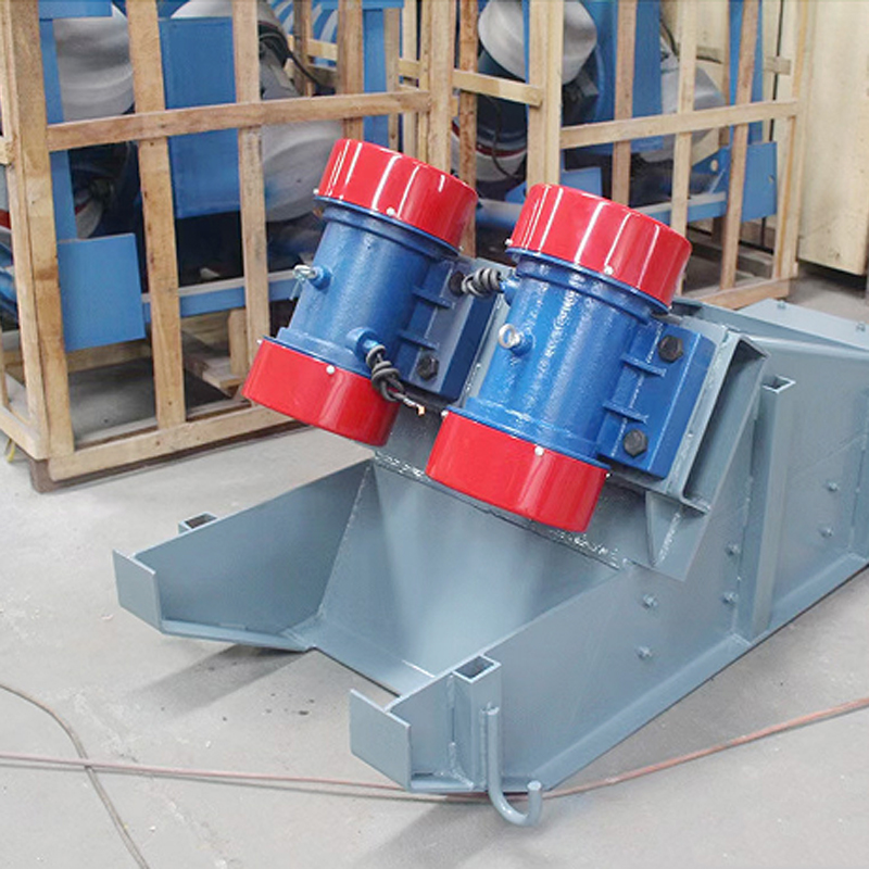 GZG系列電機振動給料機的給料過程是利用振動電機或兩臺電動機帶動激振器驅(qū)動給料槽沿傾斜方向作周期直線往復(fù)振動來實現(xiàn),當(dāng)給料槽振動的加速度垂直分量大于重力加速度時,槽中的料被拋起,并按照拋物線的軌跡向前跳躍運動,拋起和下落在瞬間完成,由于激振源的連續(xù)激振,給料槽連續(xù)振動,槽中的煤連續(xù)向前跳躍,以達到給料的目的。