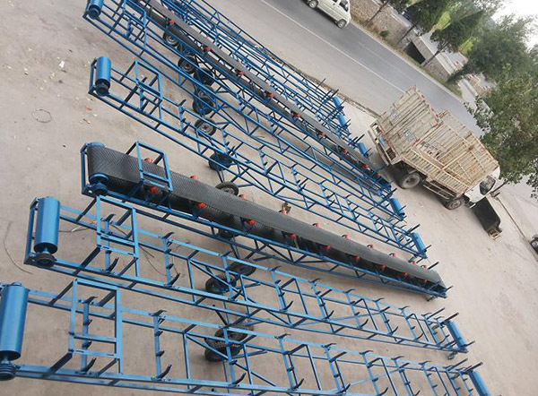 DY型可移動式皮帶輸送機是一種工效高,使用安全可靠,機動性好的連續(xù)輸送裝卸設備。主要用于裝卸地點經(jīng)常變更動的場所,如:港口、碼頭、車站、煤場、倉庫、建筑工地、沙石料場、農(nóng)場等,用來短途運輸及裝卸散料或單件重量100公斤以下的成件物品。DY型可移動式皮帶輸送機分為可升降型及不可升降型兩大類,輸送帶的運行靠電動滾筒驅(qū)動,整機的升降與運行均為非機動。