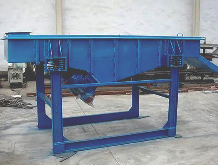 當縱向安裝在篩體上的兩臺振動電機相對轉動時,兩臺振動電機兩端的偏心塊便產生額定激振力,其產生在橫向的激振力相互抵消,其縱向的激振力通過傳振體傳遞到整個篩面上,從而使篩面上的物料受其激振力而在篩網(wǎng)面上向出料口方向跳躍運動,小于篩孔的物料通過篩孔落到下層,大于篩孔的物料經連續(xù)跳躍后,經出料口流出,由于